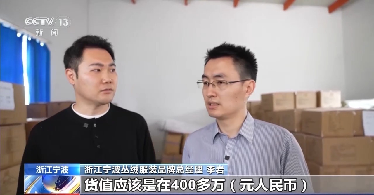 浙江宁波丛绒服装品牌总经理 李岩:一共有6万多件库存,货值应该是在400多万元人民币,非常占我们的现金流。