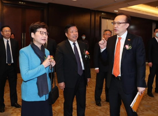 江苏省香港商会永远荣誉会长、香港特别行政区前任行政长官林郑月娥致辞强调商会发展要注重“国家所需、香港所长,江苏所有”,希望新一届商会能特别为香港年轻人在江苏省发展提供更多就业机会。