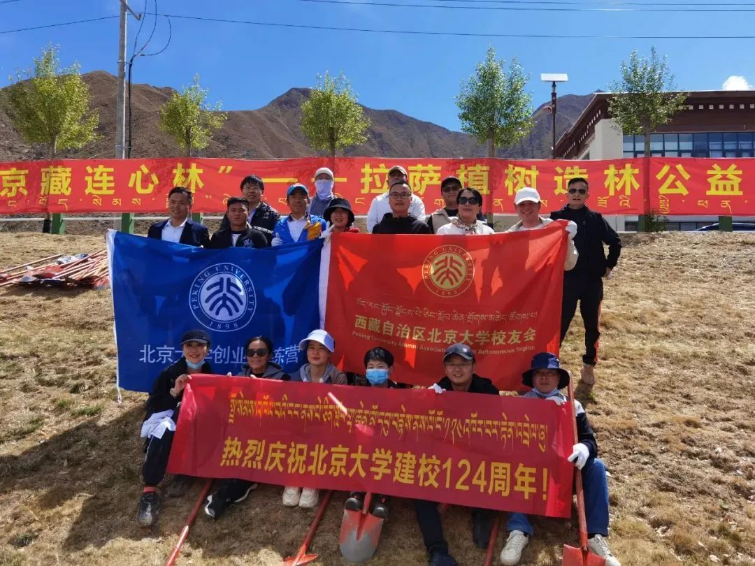 活动概述:为庆祝母校建校124周年,牢固树立“绿水青山就是金山银山”的理念,加强生态保护,提高拉萨山林覆盖率,北京大学西藏校友会携手在藏校友、北大创业训练营营友企业代表、西藏北京商会部分会员企业等约100名热心人士共同在柳梧新区开展植树造林活动。