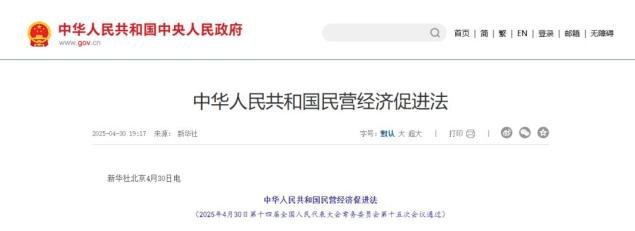 中华人民共和国民营经济促进法(2025年4月30日第十四届全国人民代表大会常务委员会第十五次会议通过)
