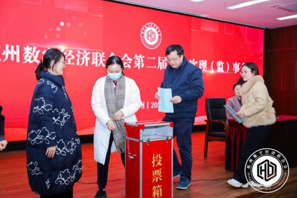 随后大会进行了杭州数字经济联合会第二届理事会和监事会的选举工作,通过无记名投票的形式,全票通过选举产生徐赤等63位同志为第二届理事会理事;章雯燕、彭建良、喻伟东等三位同志为第二届监事会监事;全票通过《杭州数字经济联合会会费收取标准》。