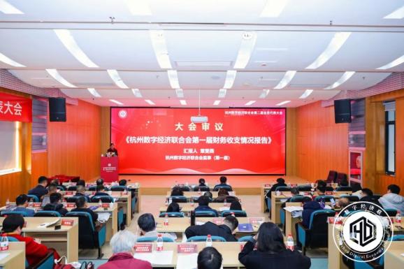 杭州数字经济联合会第一届监事章雯燕向大会作《杭州数字经济联合会第一届财务收支情况报告》,大会审议,并全票通过。