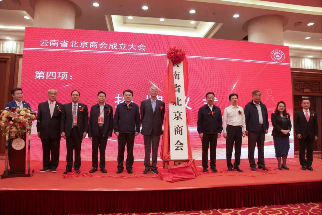 ▲云南省委统战部、省委社会工作部、省民政厅、省工商联、省投资促进局等相关部门负责人以及北京市工商界等机构代表共同为商会揭牌。