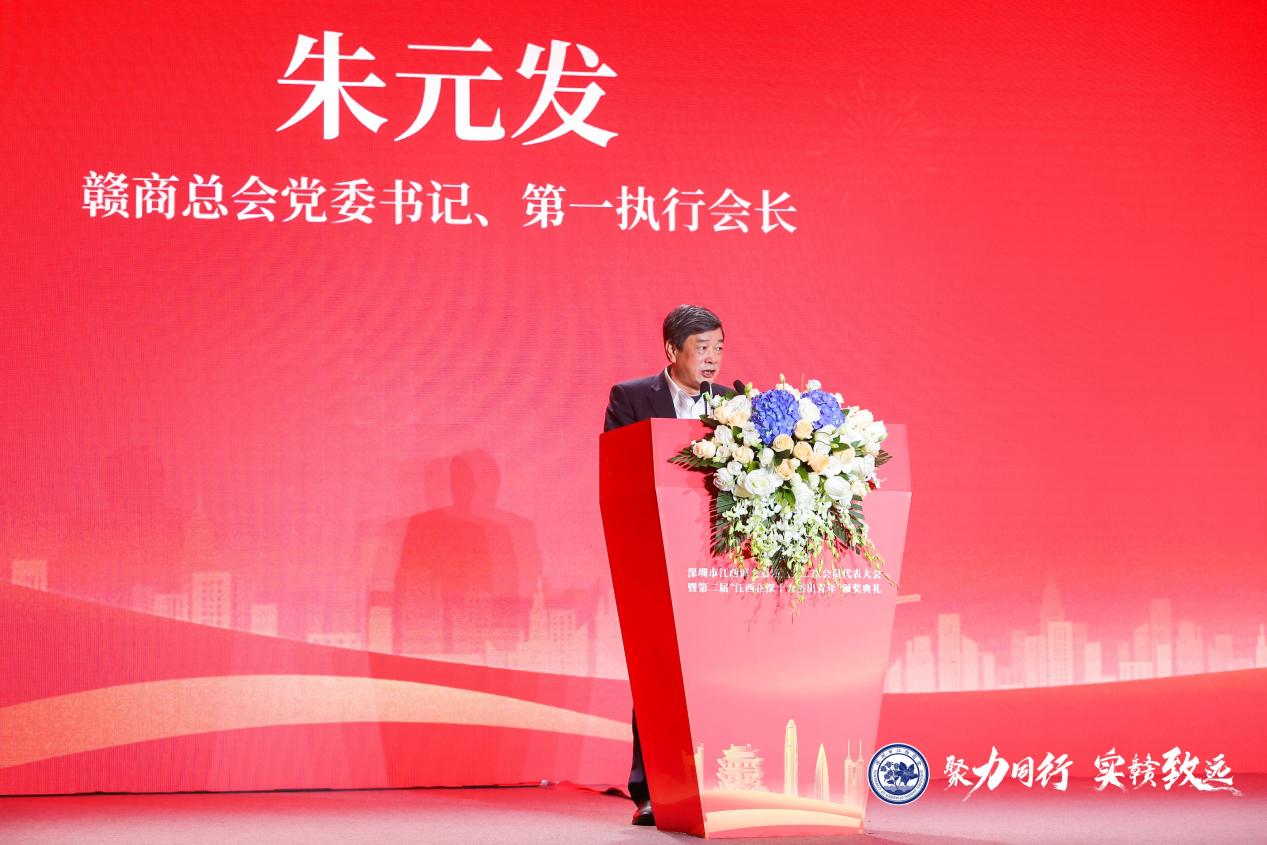 朱元发在致辞中高度肯定了深圳市江西商会自成立以来为赣深两地经济社会发展做的巨大贡献。他强调,深圳市江西商会充分发挥了桥梁纽带作用,为推动赣深两地经济交流合作做出了巨大贡献。他希望在深赣商一如既往关心和支持家乡建设,积极发挥身优势,为家乡的发展注入更多活力。同时,他还寄语广大在外的江西青年,要继续传承新时代赣商精神,勇担时代使命,展现赣鄱青年良好形象。