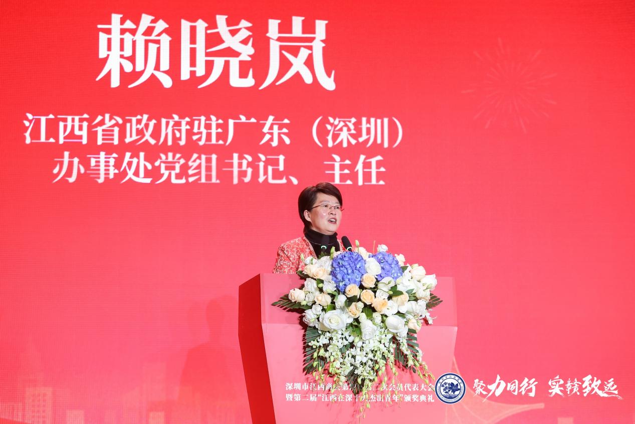 赖晓岚在讲话中对深圳市江西商会过去一年的工作给予肯定。她指出,商会的企业家们经济实力雄厚,政治立场坚定,抱团发展,回报家乡,回馈社会,商会充分发挥了桥梁、纽带作用,有效促进了江西与深圳两地的经济发展。赖主任强调,江西驻粤办的主要任务是服务广大赣商和江西乡友。她表示,将始一如既往地支持深圳市江西商会的工作,共同推动赣商的繁荣发展,为广大在广东工作、生活的江西乡友提供更多帮助和支持。