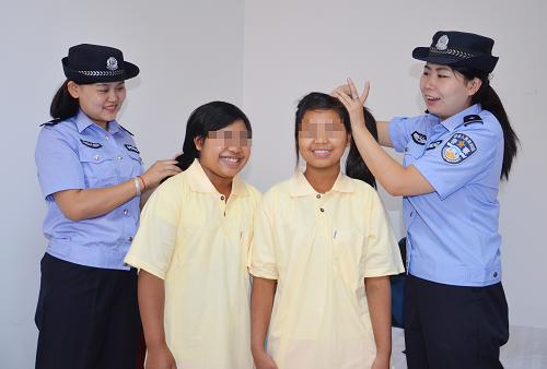 包头铁路公安处民警为解救的缅甸籍女孩买了新衣服,为她们梳洗打扮(9月10日摄)。记者24日从内蒙古包头铁路公安处了解到,包头铁路警方历时近3个月,辗转晋冀鲁豫云5省,行程万余公里,破获一起特大跨国拐卖妇女案,斩断一条从缅甸向我国境内输送被拐妇女的通道,摧毁1个拐卖团伙,抓捕犯罪嫌疑人31人,解救被拐妇女14人(缅甸籍11人),涉案金额192.5万元。新华社发(邵光彬 摄)
