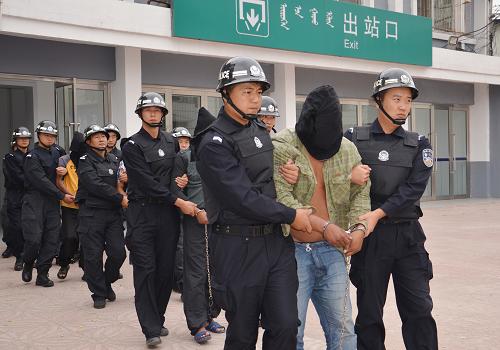 包头铁路警方将跨国拐卖妇女案犯罪嫌疑人押解回包头(9月30日摄)。新华社发(邵光彬 摄)