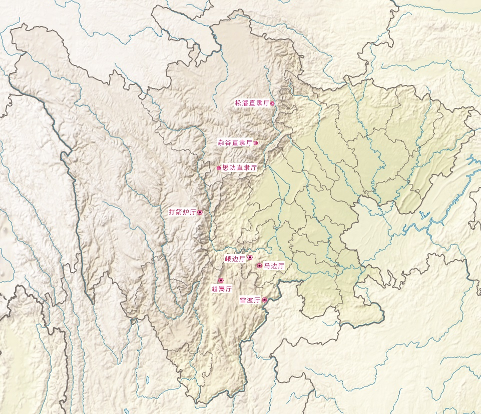 二是因改土归流或卫所裁改而安设佐贰官员而成为的政区厅。这也是川边地区的厅中最为常见的类型。其中,松潘直隶厅、越嶲厅系由卫所改置而来,杂谷、懋功二直隶厅因改土归流而设,雷波厅则同时兼具改土归流与卫所裁改双重属性,这也成为川边厅的来源中最为普遍的一种类型。