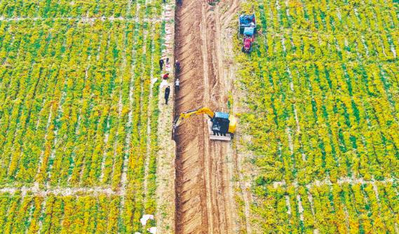 ▲近年来,经开区大力发展特色农业,采用“合作社+农户”“基地+农户”等模式,引导农户进行山药种植,实现规模化、集约化生产,带动农民增收致富。图为10月28日,胡村乡天阴村山药种植基地的农户穿梭于田间地头,忙着采挖、清理、分拣、装车,将山药发往各地市场。(记者 僧少琴 摄)