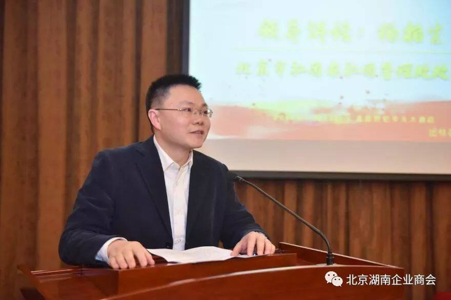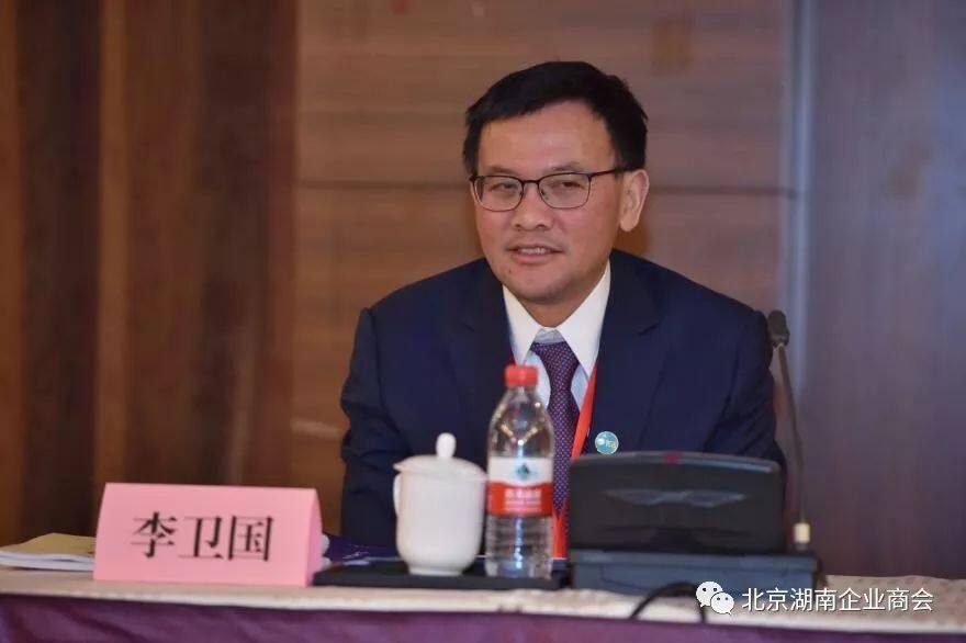 图7-北京湖南企业商会四届理事会会长、北京高能时代环境技术股份有限公司董事长、北京东方雨虹防水技术股份有限公司董事长李卫国发表指导讲话在大家热烈掌声的中,李卫国会长走上讲台,发表了精彩生动、真诚务实,非常接地气的讲话。李会长首先谈到第三届理事会的工作,对自己的贡献说得非常谦虚,对商会秘书处尤其是徐友富秘书长的工作给予了高度评价,表达了诚挚谢意;展望新的任期,李会长勉励广大湘商要有决心和韧性,要坚持、坚守北京,表示要以公益慈善之心,帮扶在京湘籍人士;李会长认为,商会应该把湖湘文化作为一切工作的原点和起点,要团结奋进,低调务实,并肩协作,抱团取暖,聚合各方资源,充分发挥商会职能作用,为湘商提供服务,为会员排忧解难,做靠谱的事,把商会办成有温度、起作用的会员之家、企业家之家;作为北漂的湖南人,他希望大家遵纪守法,保持亲清政商关系,在发展事业的同时,不忘回报社会和家乡,为京湘两地的发展做出新的贡献!李会长真诚务实而幽默风趣的讲话为商会明确了任务,提出了要求,赢得了大家阵阵笑声和掌声,我们将坚定不移遵照李会长指示精神,努力把北京湖南企业商会建成让政府放心、让会员满意、让自己心安、让社会认可的优秀社团组织。第十项议程,邀请北京市社会团体管理办公室社团管理处一处杨柏生处长作指导讲话。筹备组和秘书处非常荣幸地邀请到了北京市社团办杨柏生处长,他亲临大会现场,指导换届选举工作。在大会热烈的气氛、浓郁的湘情中,杨处长登台致辞。杨处长代表北京市社团办,向大会的召开表示热烈祝贺,他高度评价了北京湖南企业商会第三届理事会的工作,充分肯定了商会为京湘两地发展所作的贡献。作为社团人、作为湖南人,杨处长给北京湖南企业商会提出了五点希望,一是要加强党建与社团的深度融合,二是要实现服务与管理的有机结合,三是要注重历史与现代的传承发展,四是要强化改革与发展的系统整合,五是要促进时代潮流与湖湘文化的内在契合。