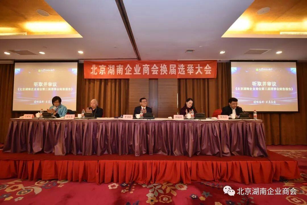 图1-北京湖南企业商会四届一次会员代表大会会场2019年11月23日,北京湖南企业商会第四届会员代表大会第一次会议在北京世纪华天大酒店岳麓厅隆重举行,会议以“团结奋进,务实求真”为主题,128名会员代表参加大会,代表了北京湖南企业商会、各直属行业分会及各市州县商会5000余家企业会员。在本次大会上,会员代表听取并审议通过了《北京湖南企业商会第三届理事会工作报告》、《北京湖南企业商会第三届理事会财务报告》、《北京湖南企业商会第三届监事会工作报告》、修改后的《北京湖南企业商会章程(草案)》、《北京湖南企业商会换届选举办法》及总监票人、监票人、计票人名单,介绍了理事、监事候选人名单和产生程序,会员代表无记名投票选举产生了新一届理事、监事、会员代表无记名投票表决通过了《北京湖南企业商会会费收取和管理办法》,宣布了新一届理事、监事选举结果,58名理事候选人、3名监事候选人成功当选;会员代表大会休会期间,同时分别召开了四届一次理事会和四届一次监事会;会员代表大会复会后,宣布了第四届理事会第一次会议选举结果,公布了第四届会长、执行会长、副会长、名誉会长成员名单,宣布了第四届理事会秘书处聘任情况,公布了秘书长、常务副秘书长、副秘书长、各机构主要负责人名单,聘任李轩为兼职秘书长,宣布了第四届监事会第一次会议选举结果,公布了监事长、副监事长名单,选举唐金龙为监事长,连选连任的第四届理事会会长李卫国发表了就职讲话,北京市社会团体管理办公室社团管理处一处杨柏生处长作了指导讲话,主持人作了总结发言,大会取得了圆满成功。