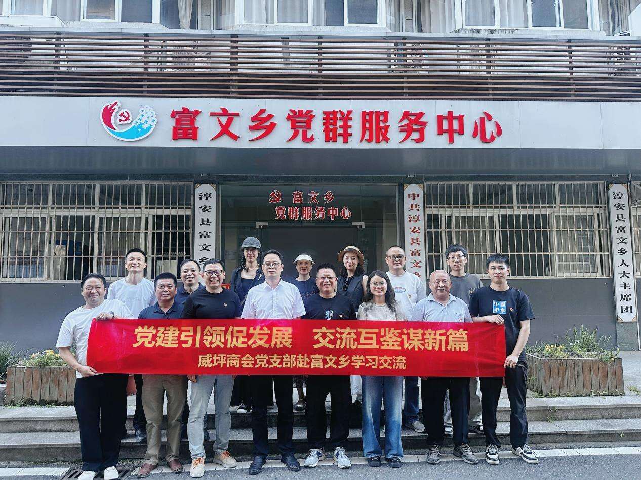 浙江在线6月11日讯(通讯员 钱聪 程红星)日前,在淳安县委统战部的指导下,淳安县威坪商会党支部书记徐如红率领商会支部及会员代表走进富文乡,开启了一场干货满满、意义非凡的学习交流活动。此次活动围绕产业振兴、项目攻坚与红色传承,实地考察、深入座谈,为两地未来合作勾勒出绚丽蓝图。