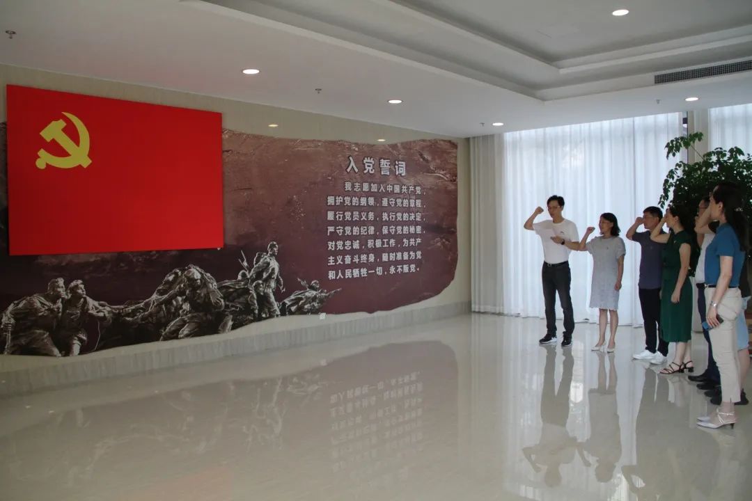 新江湾城街道营商办运用杨浦区委党校这一红色阵地,组织商会成员在此宣誓墙前开展重温入党誓词、宣誓活动。“很荣幸能作为领誓人,带领商会企业家同行们重温入党誓词,时隔多年仍然能感受到当初激动的心情。”商会党支部书记、上海新空间工程设计管理有限公司董事长杨韬带领党支部成员宣誓。