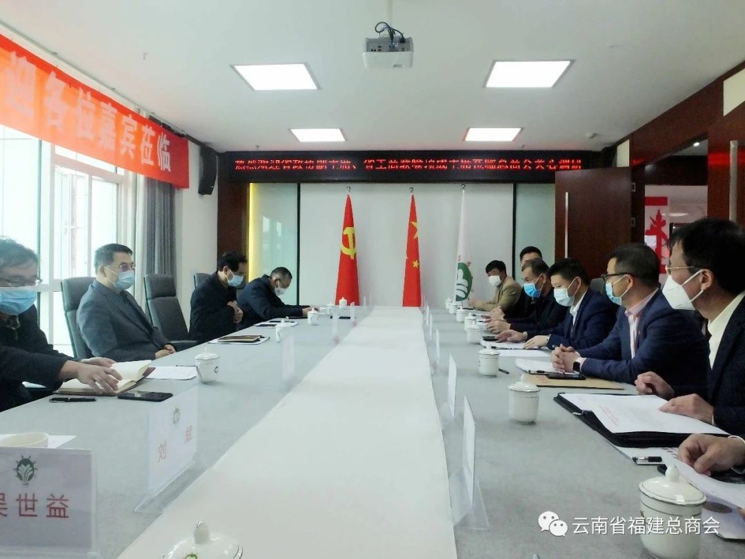 3月3日,按照云南省委、省政府的工作安排,云南省政协副主席、省工商联主席喻顶成,云南省工商联副主席王志荣一行,到云南省福建总商会关心调研,主要了解商会企业在抗击疫情、用工市场、生产经营成本、资金以及复工复产保障等方面的情况以及存在的具体矛盾困难。