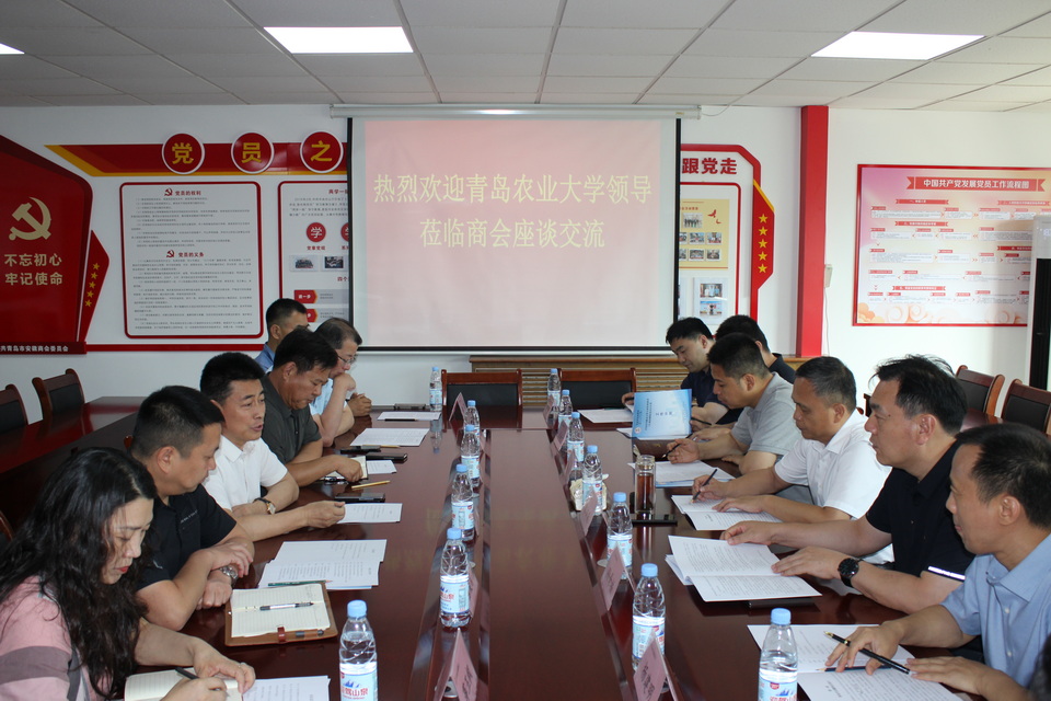 6月23日下午,青岛农业大学副校长郭尚敬率生命科学学院党委书记孙景福、院长杨松,杨建明教授团队等一行,与青岛市安徽商会会长孙自胜、常务副会长兼秘书长陈俊言等企业代表进行了交流。