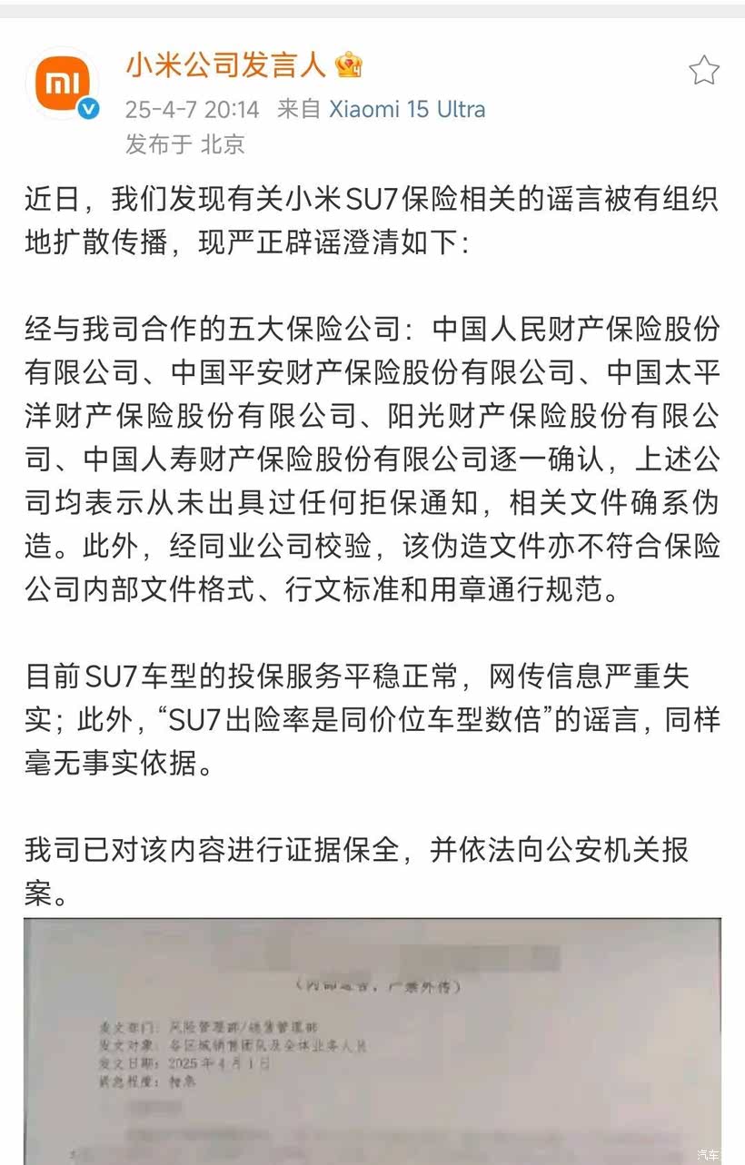 先来说说拒保的事,小米官方也发公告了,合作的几家公司没有拒保的情况。
