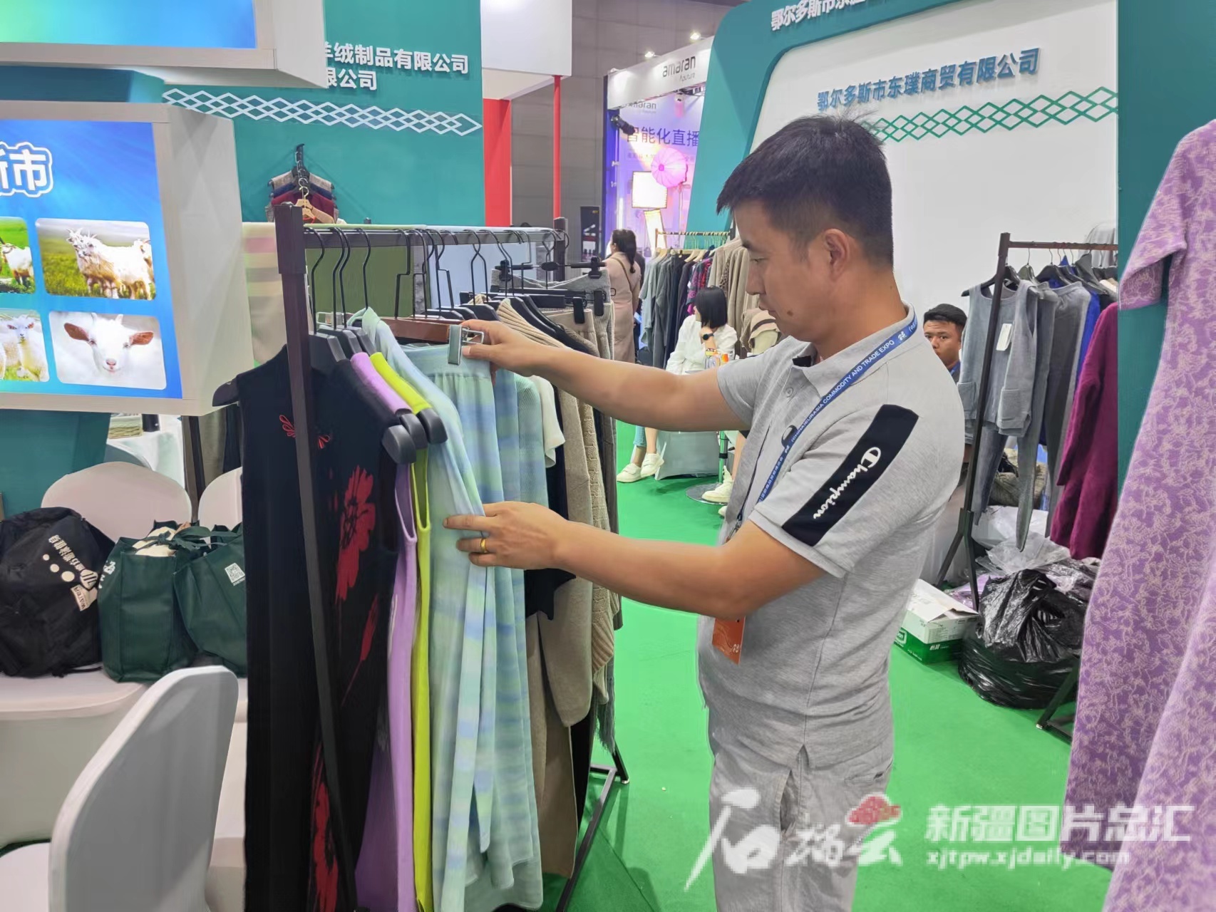 作为“中国绒都”的鄂尔多斯市羊绒企业首次组团参加商博会,9家羊绒生产企业带来了近400款羊绒、羊毛制品。推介活动中,鄂尔多斯市绒吉瑞羊绒制品有限公司以羊绒抽象艺术为灵感制作的羊绒披肩、羊绒艺术画等均是在新疆首次发布。