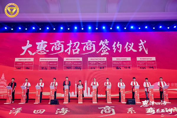 在大惠商招商大会上,惠安县、泉港区、台商投资区、福建省五建建设集团有限公司分别作招商推介。会上,惠安县人民政府和灏煜资产管理(北京)有限公司,惠安经济开发区管委会和上海尚泰环保配件有限公司,螺阳镇人民政府和永恒盛集团,螺阳镇人民政府和上海数智世界工业科技集团有限公司,山霞镇人民政府和福建泉州浙江侠客旅游发展有限公司,辋川镇人民政府和上海友立胶粘制品有限公司分别进行了意向项目签约,意向投资金额达48亿元。