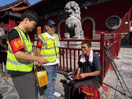 “大爷,天气越来越热,给您拿瓶水解渴降温。您有什么需求尽管告诉我,我可以帮您。我解决不了的,还有救助管理站来帮您。”近日,在开封市街头,一组身着制式马甲、佩戴印有“救助管理”字样红袖章的工作人员,向临时遇困人员发放救助物资,宣讲救助管理政策。