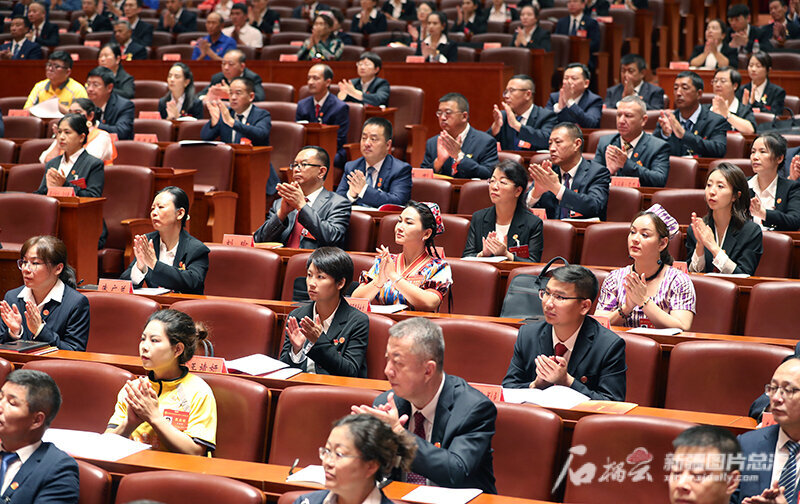 8月20日,大会听取自治区总工会第十二届委员会工作报告,与会代表报以热烈掌声。石榴云/新疆日报记者 崔志坚 摄