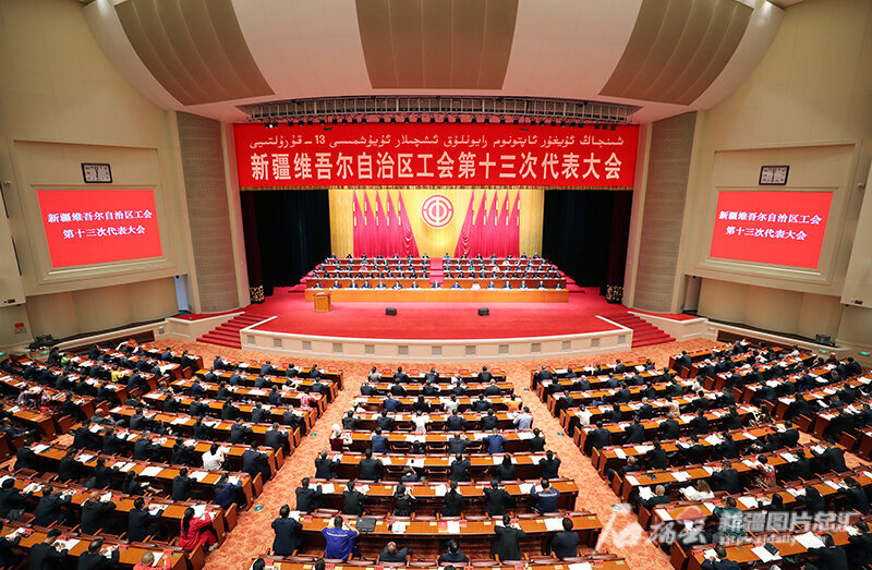 8月20日,新疆维吾尔自治区工会第十三次代表大会在新疆人民会堂开幕。石榴云/新疆日报记者 崔志坚 摄