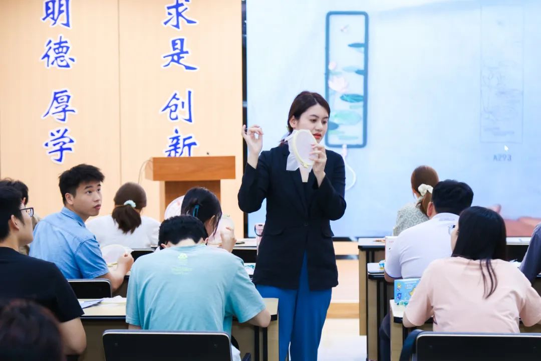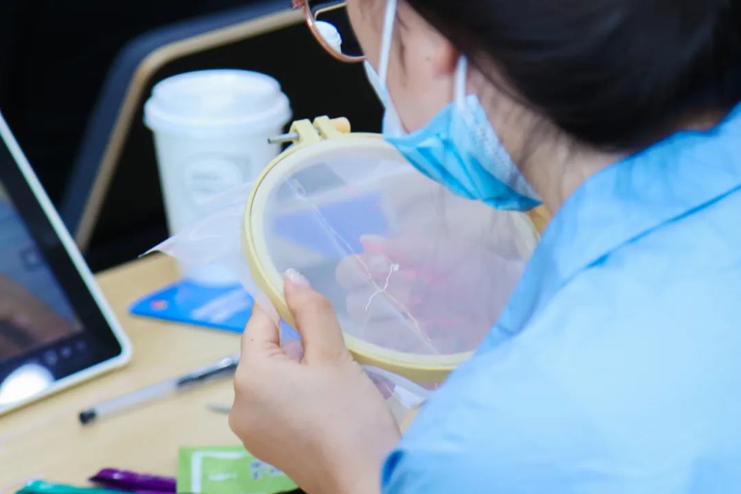 苏州高新区青年商会副秘书长单位、苏州兰竹君邸刺绣艺术有限公司总经理郁竹君向学子们介绍了发源于镇湖街道的四大名绣——苏绣,并指导学子们现场沉浸式体验。