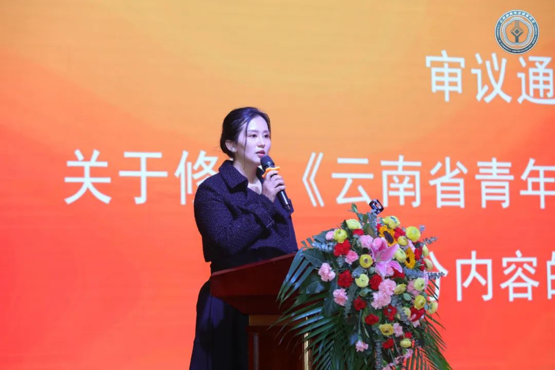 省青商会秘书长孙闰芳介绍《云南省青年企业家商会章程》修改提案并提请大会审议