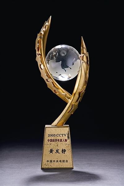 这座奖杯的所有者是黄发静,现为温州日丰打火机有限公司董事长。