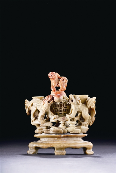 这件20世纪30年代的青田石雕狮子舞绣球摆件,捐赠者是旅法华人艺术家叶星球。