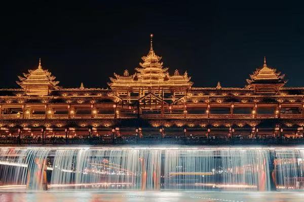 宣恩山美水更美。夜幕降临,贡水河畔化身“不夜城”。仙山贡水旅游区以贡水河为主轴,两岸布局景观景点、消费业态等,生态资源与人文风情并举,特色物产与民族文化相映生辉,是国家AAAA级旅游景区。目前,该景区已形成“五感沉浸”闭环:乘热气球升空,墨达楼、文澜桥的灯光在河面铺成星河;逛兴隆老街,伍家台冷泡茶成为网红伴手礼;贡水河畔旁,一边是非遗打铁花,一边是万人水仗,一边是为今年“浪漫宣恩‘嗨’一夏 水上女儿会”打造的极光音乐节,上演一场视听娱的“盛宴”;烤活鱼一条街上,浓郁烟火气混着甜酒西瓜的甜蜜,让人沉醉。