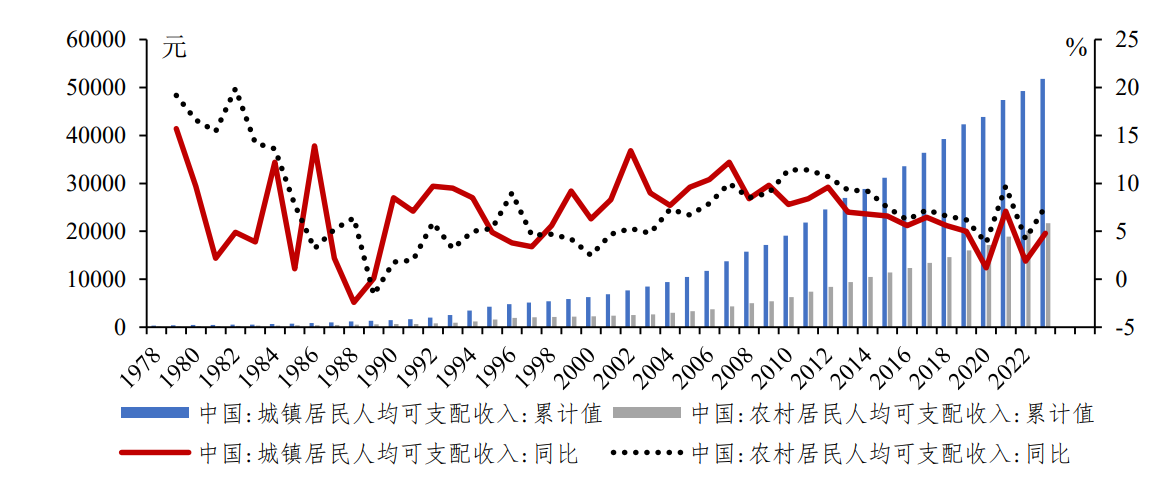 中国城乡居民收入差距的变化趋势,数据来源:中国统计年鉴图片来源:中银研究