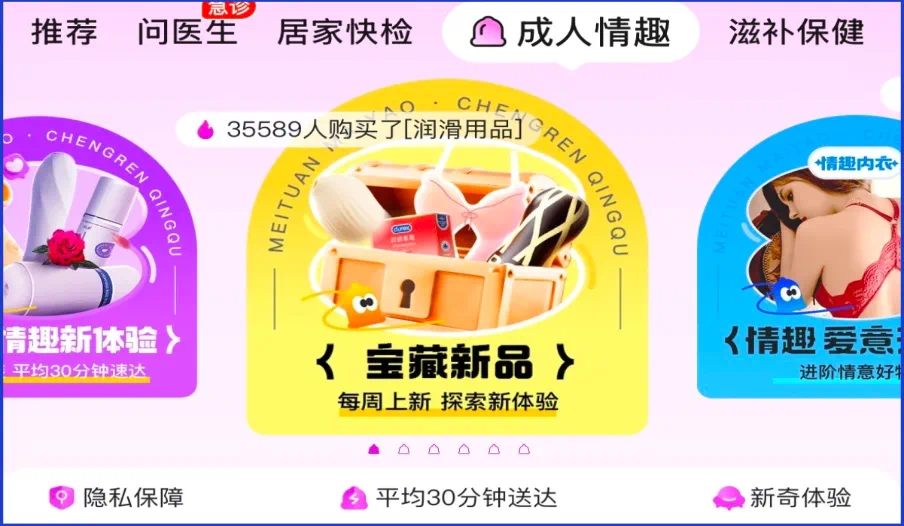 大约在2022年底至2023年初,一股新风悄然从外卖平台席卷而至,成人用品外卖店开始扎堆出现了。“30分钟送达,全程隐私包装”“比电商快递更快,比便利店种类更多,比无人柜更近在咫尺”诸如此类的表述,为行业带来了一种新的可能。张先生也在这一时期选择“南下”,在杭州开了一家自己的特色外卖店。