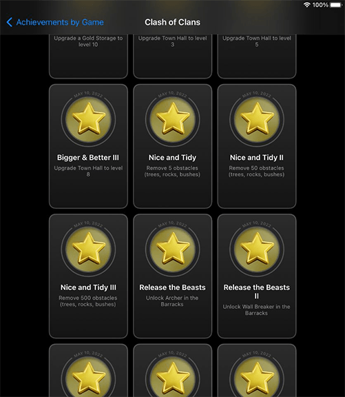 最后,苹果设备 Game Center 默认状态是打开的,需先进入设置进行关闭,否则直接打开会同步的是一个新号。登录安卓端绑好的 Supercell ID 进入游戏,再退出游戏,打开 Game Center 重进即可。你的 Game Center 有你当前账号所对应的成就则说明成功。反之不成功,则说明被他人 Apple ID 绑定,或者你的 Apple ID 已绑定了国服账号,无法再绑定一个账号。目前,一个 Game Center 只能绑定一个 COC 国际服账号。