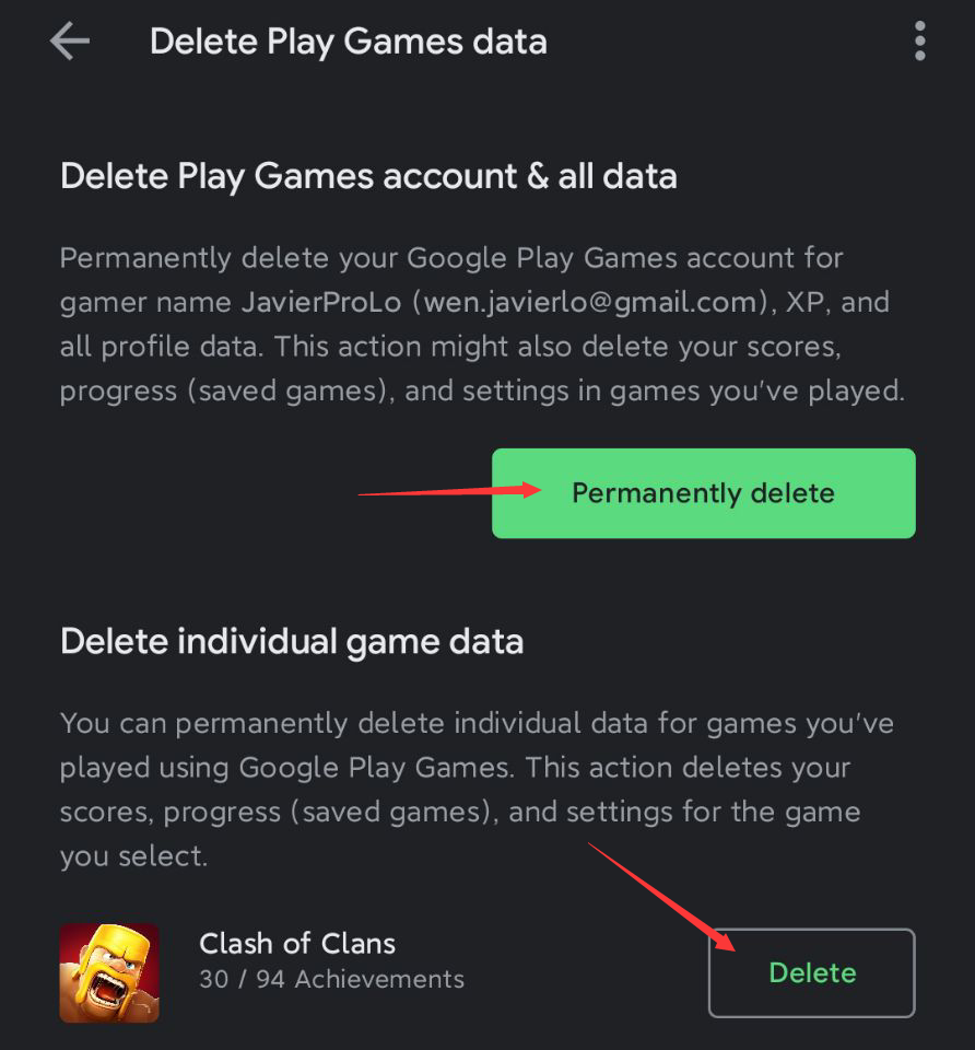 值得注意的是,如果你想解绑 Google Play 不能通过 Delete Games 来取消绑定,只能通过游戏内 Disconnect Google Play 选项或寻求客服帮助解绑。同样地,苹果也不能通过注销 Apple ID 来解绑 Game Center。