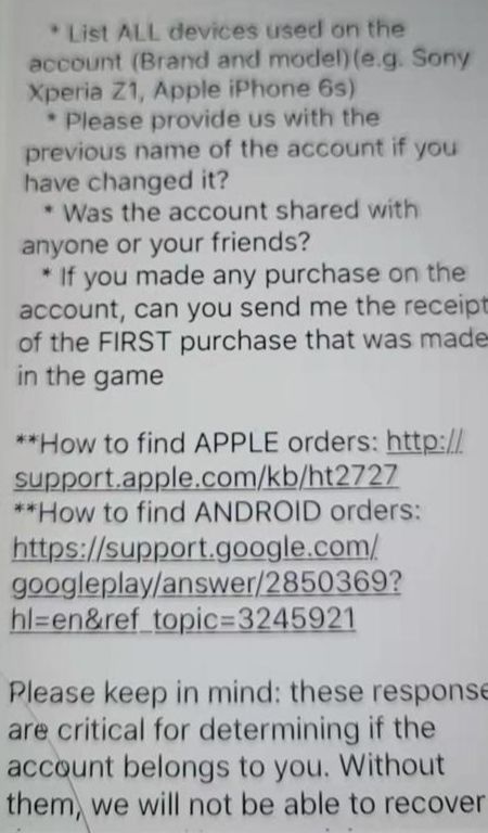 Supercell ID 类似 Google 帐户,会在后台记录你账号登录的所有设备。这里似乎可以不填全(笔者也不太确定,官方并未透露收集的信息保留多久),要求尽量填写所有没有登出过 Supercell ID 的设备(直接卸载或清除 app 数据不算登出),但千万不能填错。如果使用过第三方脚本挂机,请把虚拟机的设备型号也记录下来。此外,安卓手机刷原生或类原生系统可能会改变设备型号,以谷歌账号显示的为准,如有必要可向客服说明。