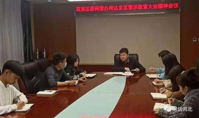 近日,承德市双滦区委网信办组织召开全体会议,传达全区警示教育大会精神。会议要求全体工作人员要保持政治上的清醒和坚定,从身边的违纪违法典型案例中汲取深刻教训,认真落实全面从严治党主体责任。区委网信办主任李丙杰主持会议。