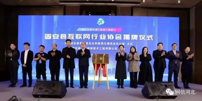 11月20日,固安县互联网行业协会揭牌仪式举行。廊坊市委宣传部副部长、市委网信办主任汪国会,固安县委常委、宣传部部长、县委网信委副主任张秉娟,县委网信办主任刘建生,县互联网行业协会会长焦雪峰及固安县知名互联网企业代表等参加揭牌仪式。