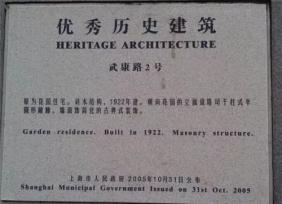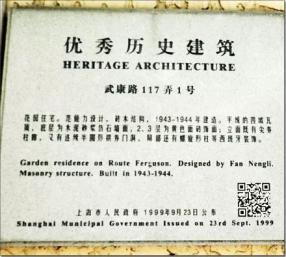这是一幢中西合璧混合式建筑,外形具有西方折中主义风格。花园住宅由当时上海华籍著名建筑设计师范能力设计,于1944年建成使用,楼高3层,面向南,砖木结构。外形带有较多西班牙式花园住宅的特色,如平缓的四坡瓦顶,琉璃筒瓦铺就的屋面。底层为水泥砂浆仿石墙面。二三层立面为黄色釉面砖饰面。立面既有尖券柱廊,又有连续弧形券式门洞。阳台外框上的变形为西班牙式连续小券,门框两侧设置螺旋形柱式等西班牙风格装饰。