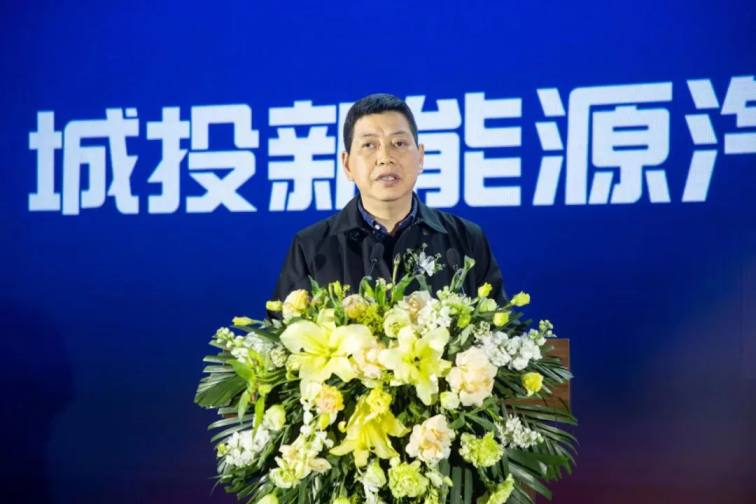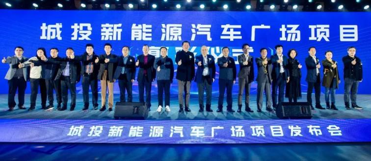 多位领导嘉宾上台共同为项目剪彩,开启城投新能源汽车广场项目新篇章。