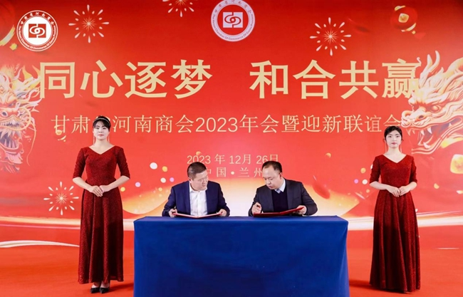 12月26日,甘肃省河南商会2023年会暨迎新联谊会在兰州奥体如意华玺酒店举行。省工商联领导、在甘河南籍离退休老干部、商会名誉会长和荣誉会长、兄弟商会代表、特邀嘉宾,以及商会会员约400人出席大会。