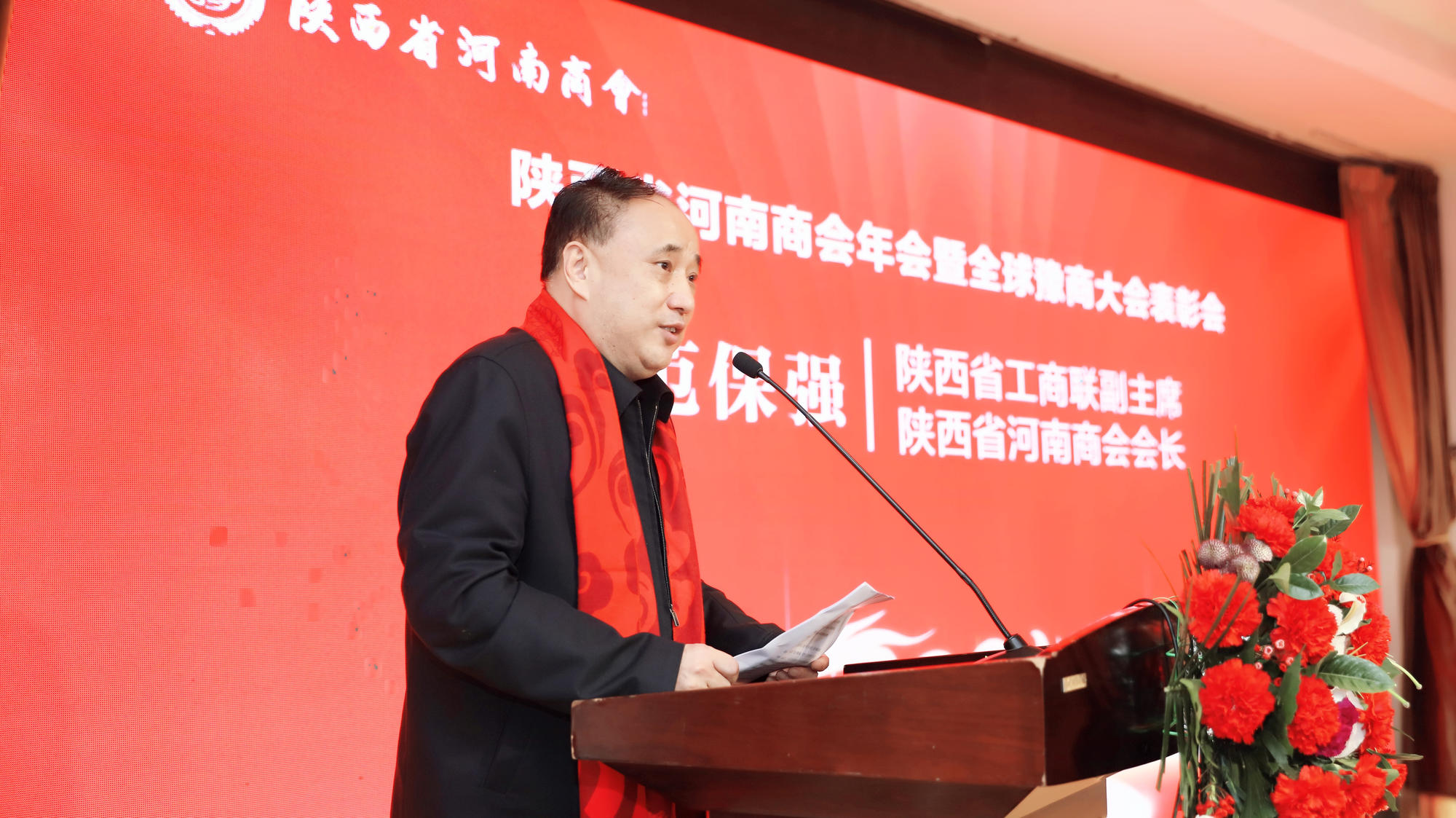 陕西省工商联副主席、陕西省河南商会会长范保强会长致欢迎辞。陕西旅游集团党委原副书记、陕西省河南商会党支部书记常梦春作2023全球豫商大会承办工作总结报告。