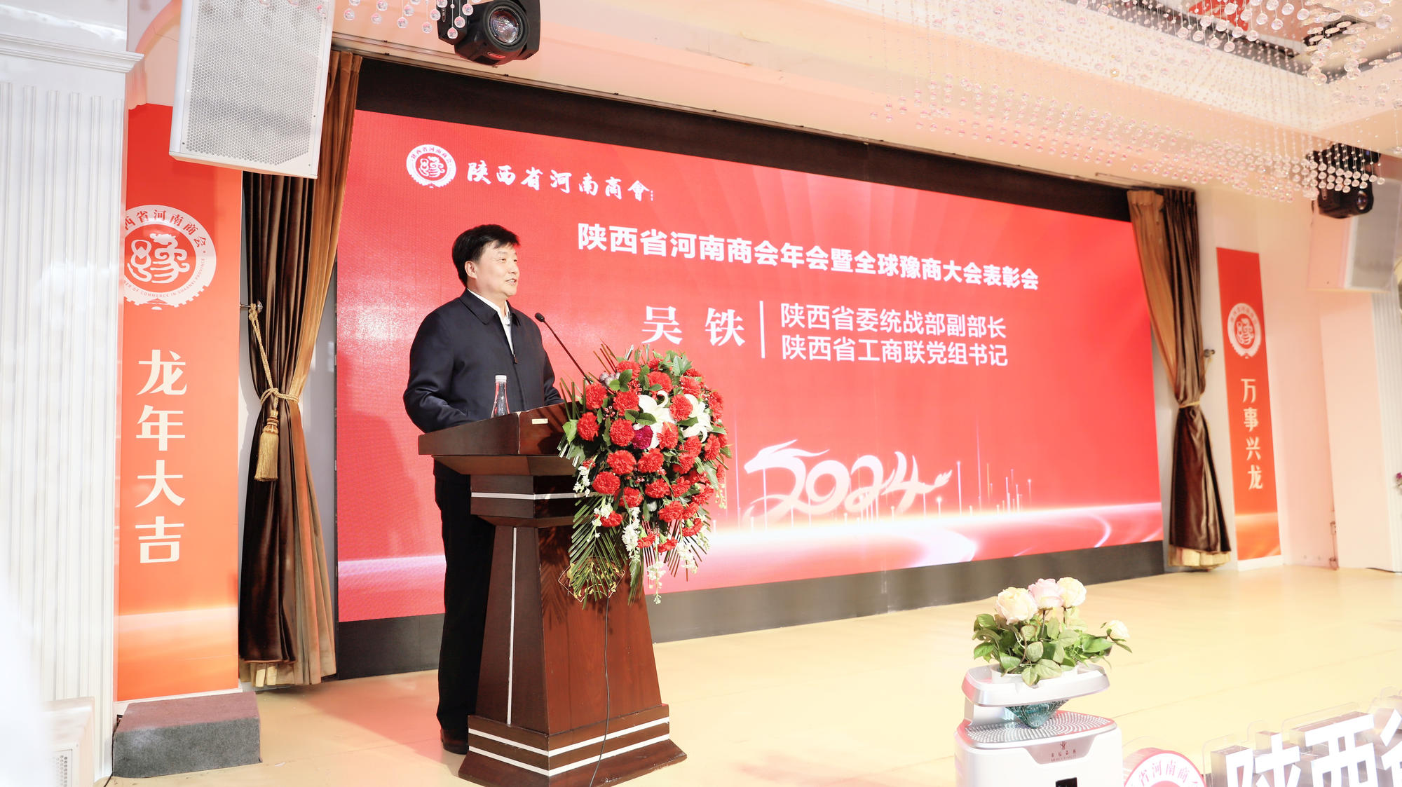 陕西省委统战部副部长、陕西省工商联党组书记吴铁讲话时指出,近年来,陕西省委省政府坚定不移地鼓励、支持、引导陕西民营经济高质量发展,尽心竭力为企业家提供创业安心、发展顺心、生活舒心的良好环境,先后出台了一系列务实有效的政策措施,极大地鼓舞和坚定了全省民营经济人士的发展信心。广大在陕豫商在两省稳定增长、促进创新、增加就业、改善民生等方面发挥了重要作用,为陕西经济社会高质量发展做出了巨大贡献。 陕西省河南商会在特色一流商会建设方面先行先试、做出示范,高水平、高质效承办了2023全球豫商大会暨陕西经贸推介交流会,为海内外豫商与豫陕之间搭建了合作交流的良好平台,引导民营企业适应新变化,着眼新需求,培育新业态,助推全省民营经济健康发展高质量发展。吴铁强调,陕西省河南商会要充分发挥自身优势,搭建更好更广阔的平台,努力建设模范商会、标杆商会,积极为在陕豫商提供政策、资金、技术、信息、人才、法律等服务,力争把豫商的事情办成、办好、办到位。阜外豫商组织要争当豫陕“走出去”和“请进来”的友谊使者,倾心尽力支持豫陕建设,努力成为豫陕经济发展的主力军,在支持豫陕发展的同时汲取丰富的营养和无穷的力量,实现融合共生、发展共赢。