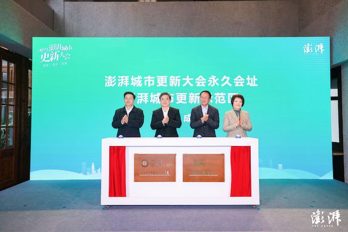 大会宣布,张园成为澎湃城市更新大会永久会址和首个澎湃城市更新示范区,上海市政协副主席、党组副书记肖贵玉,上海市规划和自然资源局局长、党组书记张玉鑫,静安区委书记于勇,上海报业集团党委书记、社长李芸,出席揭牌仪式。