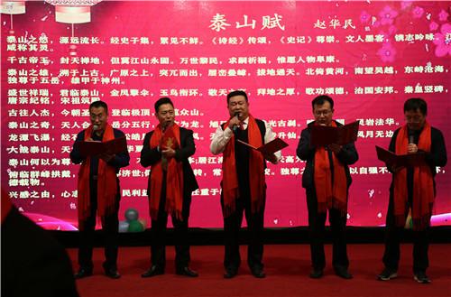 ▲东营市泰安商会领导班子朗诵《泰山赋》将文艺演出推向高潮