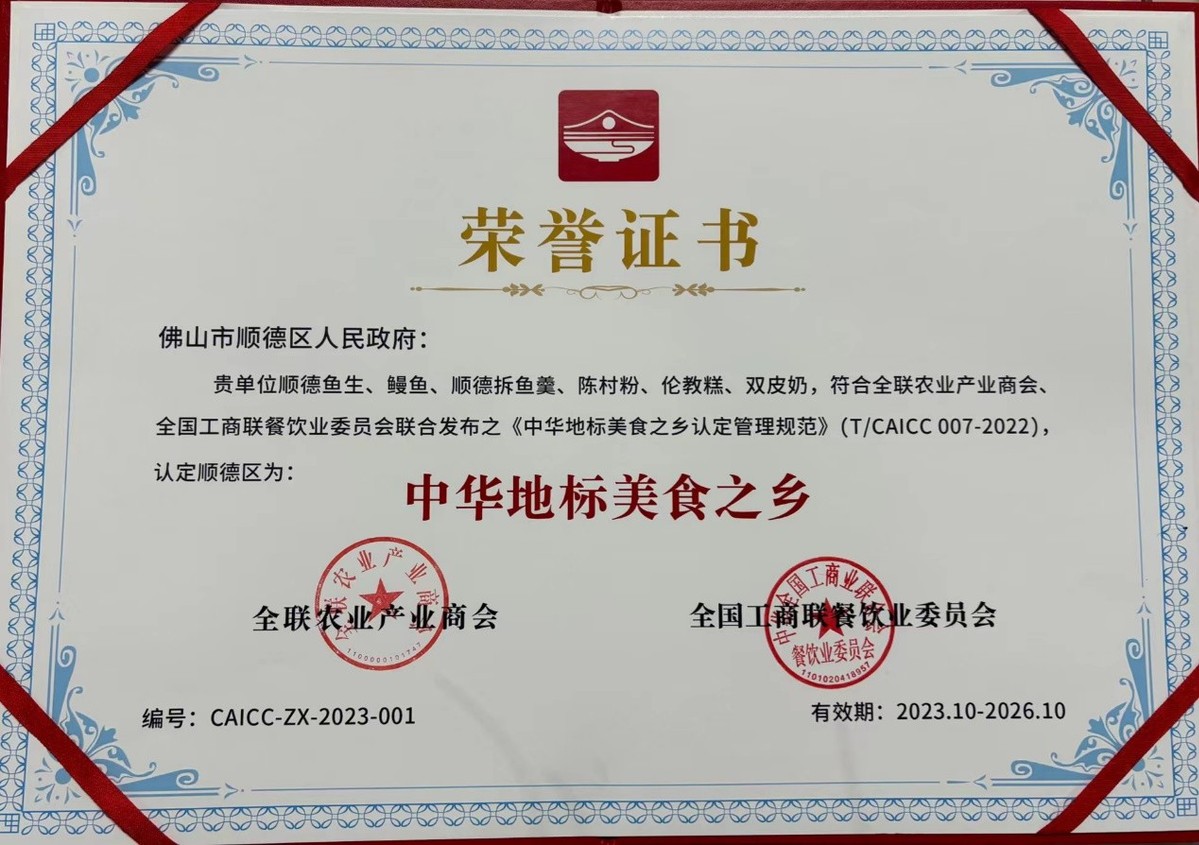 今年3月,由顺德区农业农村局携手顺德区饮食协会,向全联农业产业商会、全国工商联餐饮业委员会,提交了“中华地标美食之乡”及“中华地标美食(经典、新锐)品牌”认定申请。经全联农业产业商会与全国工商联餐饮业委员会专家组资料审核、实地考察、联合考评和公示无异议后,顺德被认定为“中华地标美食之乡”、24家企业所属品牌被认定为“中华地标美食经典/新锐品牌”。