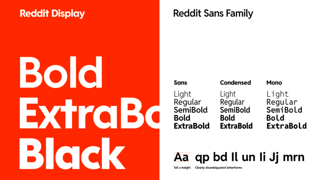 同时Reddit 还将推出新的定制字体、Reddit Display 和 Reddit Sans。Reddit Display 直接融入了对话主题,并以对话气泡的形状设计了反形式。