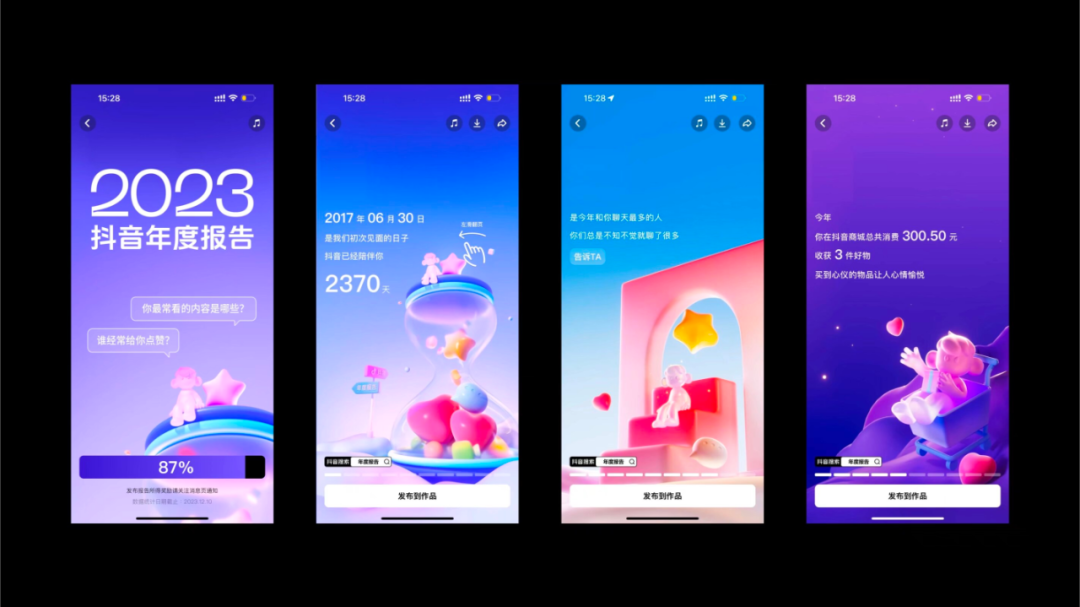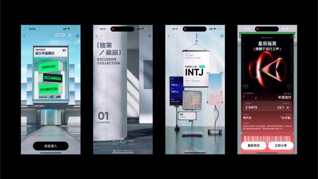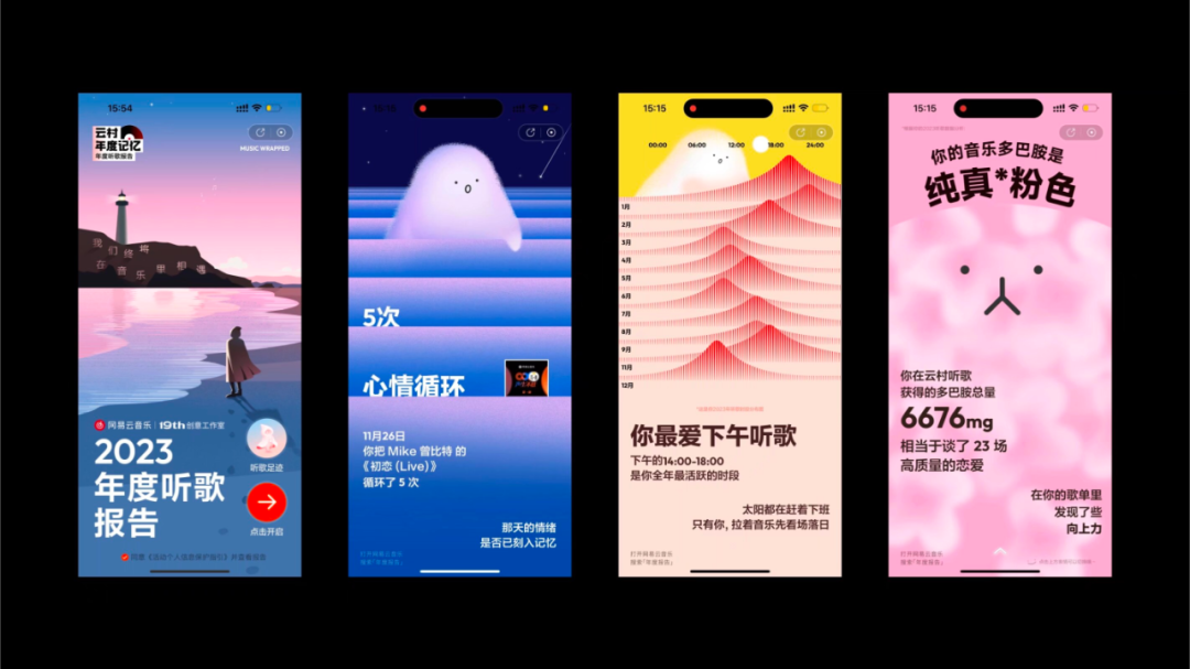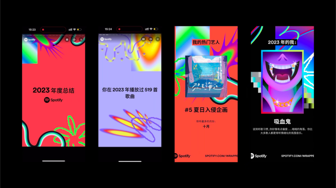 时值岁末,各家友商APP纷纷发布2023年度的用户数据报告,为用户总结一年的使用数据和轨迹。各家报告风格迥异,如Spotify延续了去年的设计风格,用色大胆,对比强烈,采用大量造型简洁且夸张的几何图形,打造成为一个燥热迷幻的电音派对现场。QQ音乐则被设计成为一个3D版的线上“音乐展览”,而网易云音乐则一如既往走清新风格,画风唯美浪漫,以一个可爱的风帽小人带领用户沿着“听歌足迹“走过整个报告。