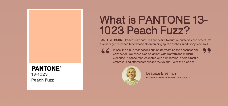 PANTONE 2024 年度代表色正式发布——13-1023 Peach Fuzz 柔和桃。