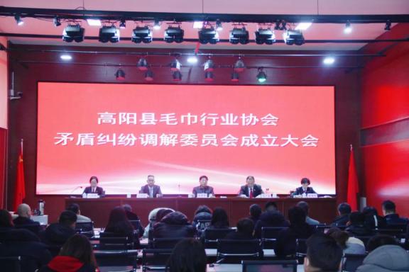12月16日,高阳县毛巾行业协会矛盾纠纷调解委员会成立大会在河北瑞春纺织有限公司会议中心举行。