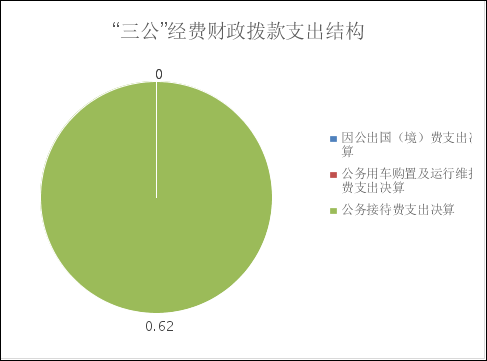 2021年“三公”经费财政拨款支出决算中,因公出国(境)费支出决算0万元,占0%;公务用车购置及运行维护费支出决算0万元,占0%;公务接待费支出决算0.62万元,占100%。具体情况如下: